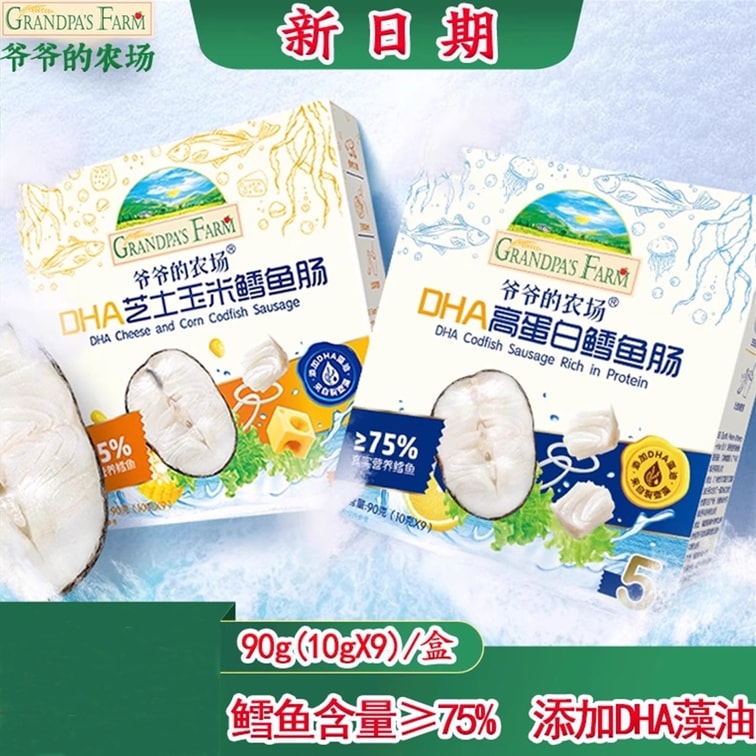 爷爷的农场 深海鳕鱼肠 DHA高蛋白鳕鱼肠 儿童营养零食90g*【1盒】