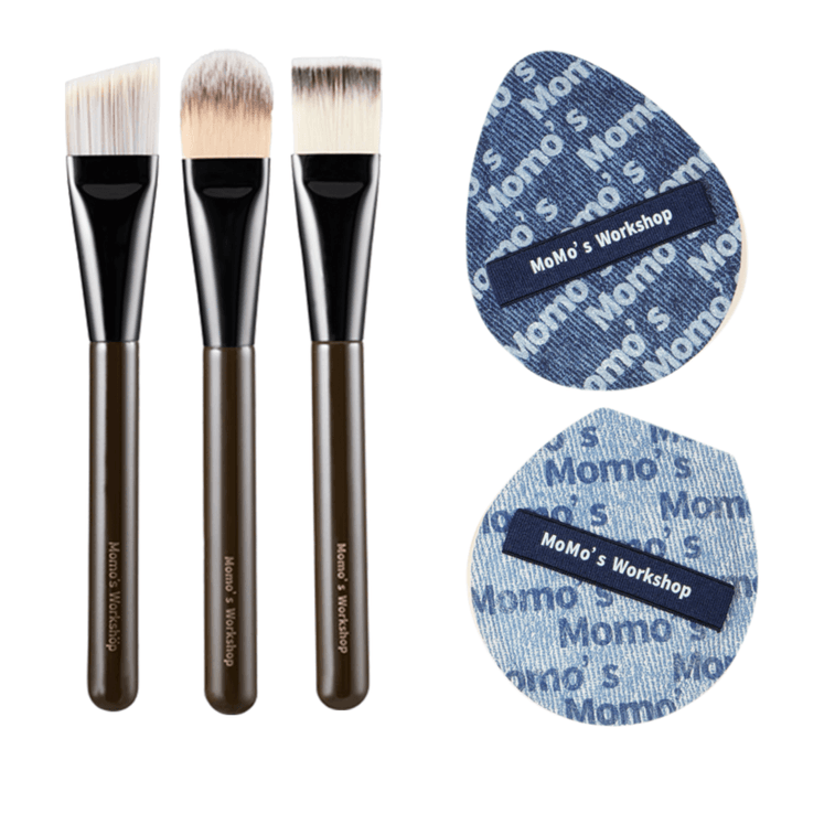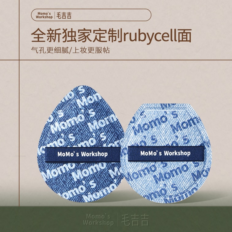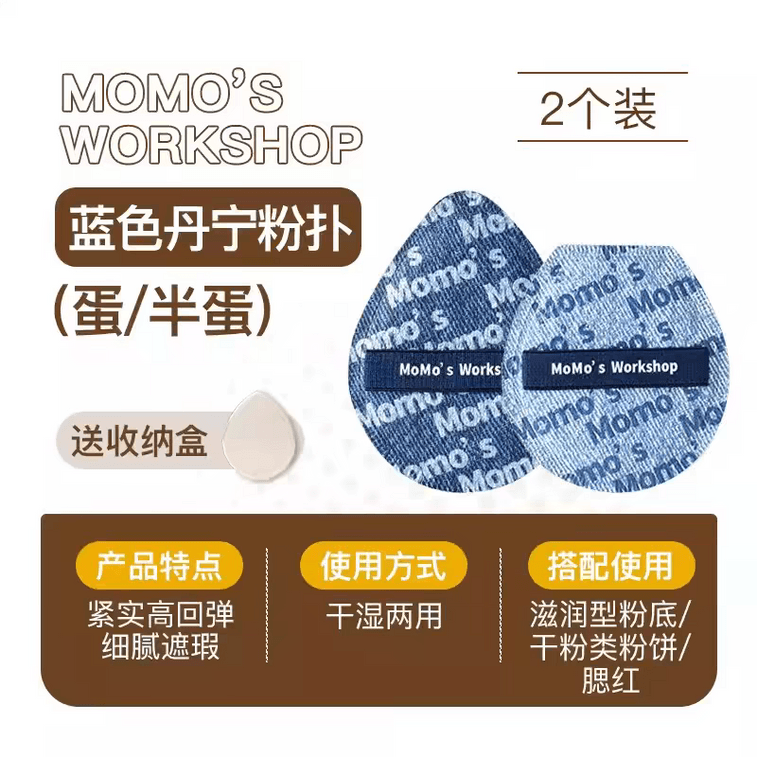 毛吉吉 蓝丹宁粉扑+粉底刷 套装蛋形硬弹+一刀切柔韧滋润粉底/腮红膏通用一盒解锁全妆(5枚装)