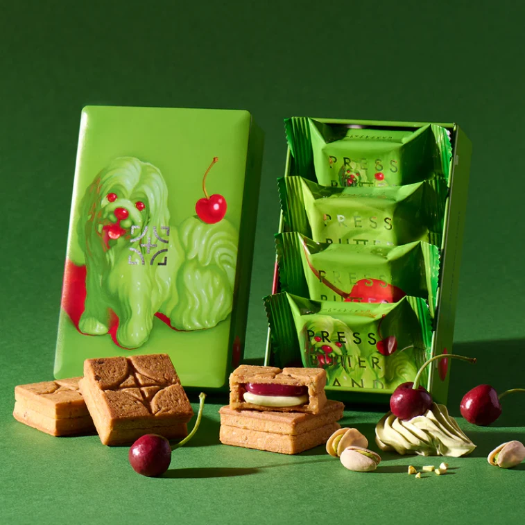 【日本直邮】日本 press butter sand 甜品系列 开心果樱桃双层奶油夹心黄油曲奇饼干4个装