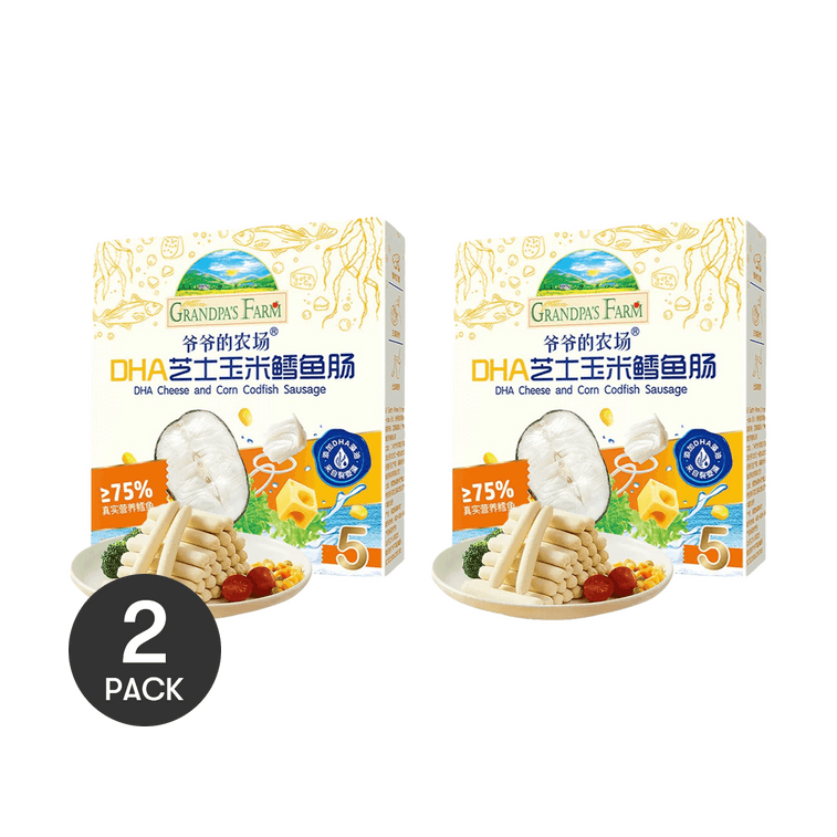 爷爷的农场 DHA芝士玉米鳕鱼肠 高蛋白芝士玉米肠儿童营养零食香肠 90g *2【2份超值装】