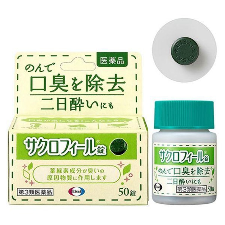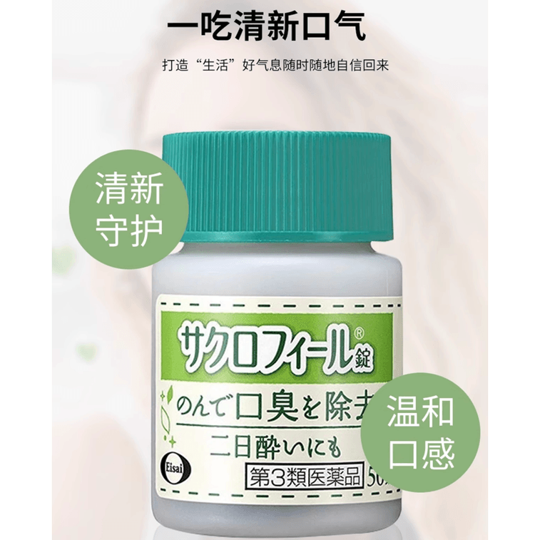 【日本直邮】 日本 卫材 祛除口臭片 口腔异味 去口气 叶绿素 口气清新 50片