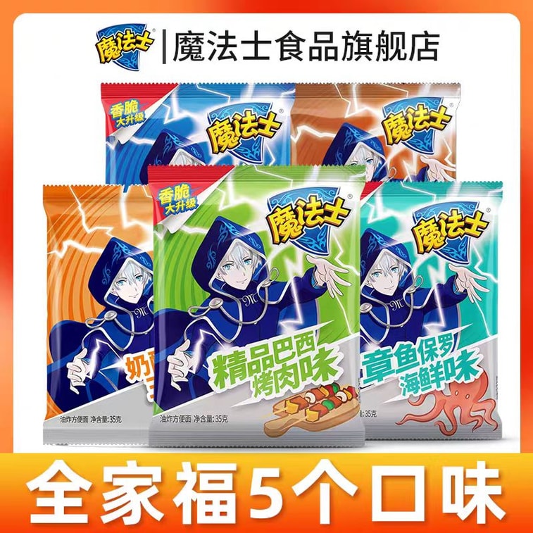 【中国直邮】 魔法士 干脆面整箱装干吃面大包装35g怀旧晚上解饿解馋小零食小吃休闲食品 多种混合味35g*6袋
