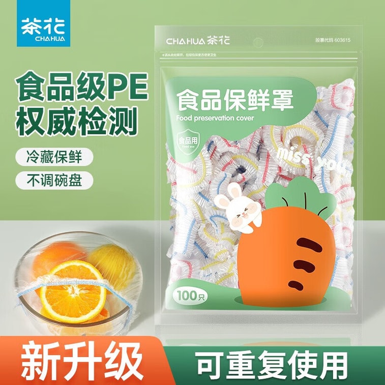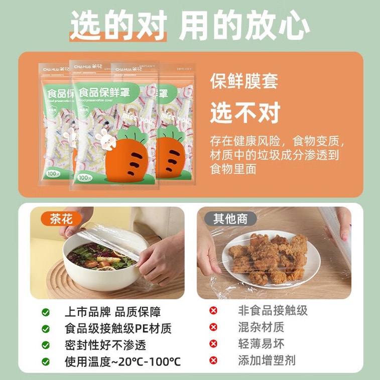 茶花 一次性加厚松紧保鲜罩 100只/袋冰箱保鲜袋 剩菜通用