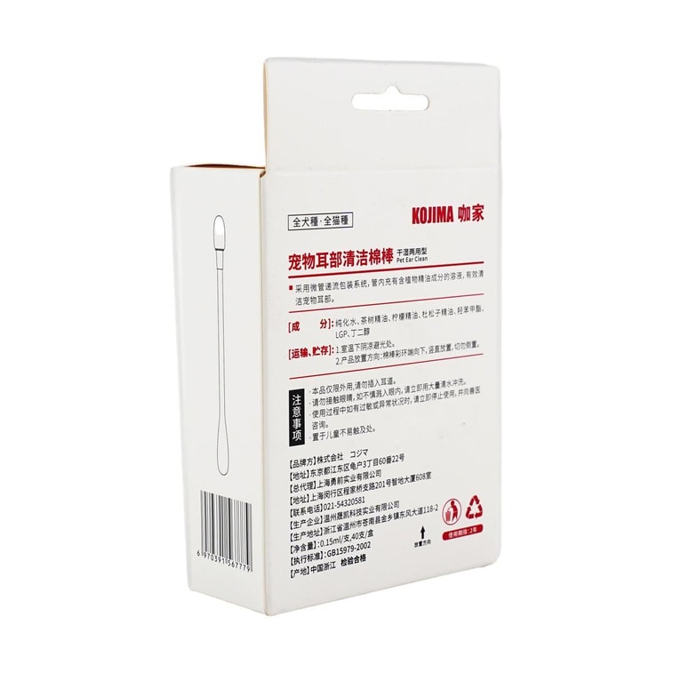 日本KOJIMA 宠物耳部清洁棉棒 精油棉签 预防耳臭耳螨耳炎 40根/盒