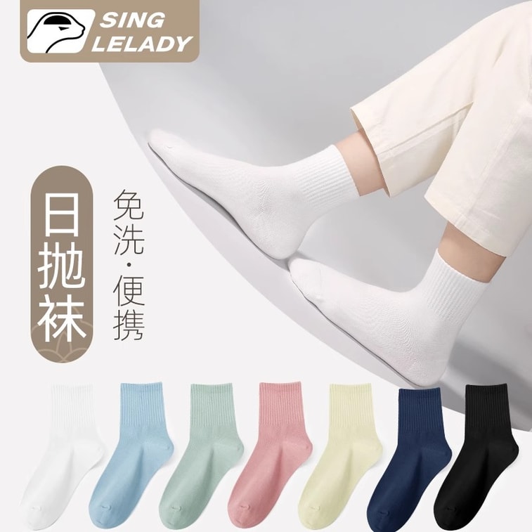 【中国直邮】尚官 一次性袜子莫兰迪色女士中筒 5双 高弹透气 柔软舒适 冬季免洗