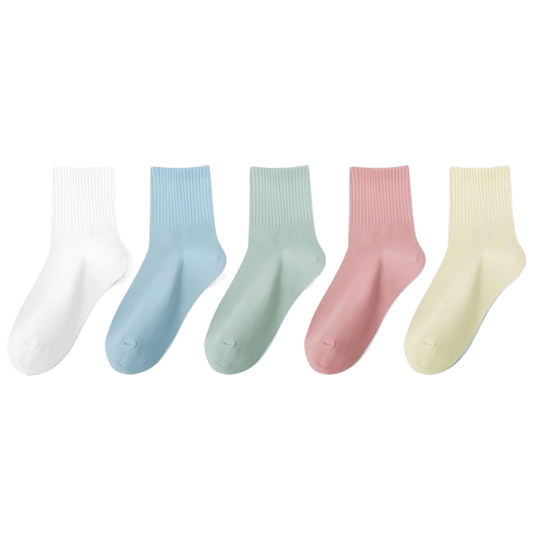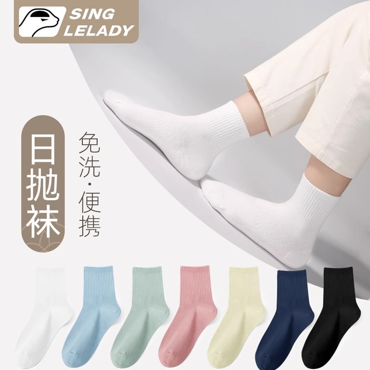 尚官 一次性袜子 莫兰迪色女士中筒 5双 高弹透气 柔软舒适 冬季免洗