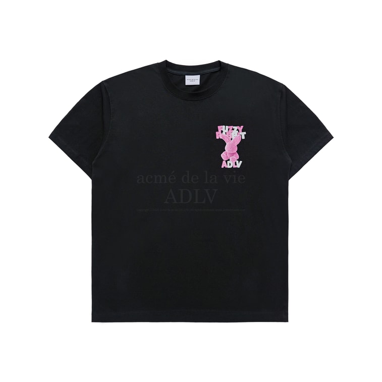【韩国直邮】 韩国 acmé de la vie ADLV 毛绒字体兔短袖T恤 黑色 2