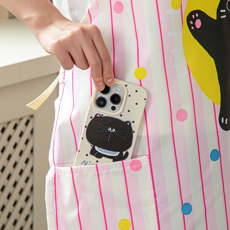 FaSoLa Life 多巴胺围裙 蓝色条纹动感猫/件 厨房防水防油 萌趣罩衣
