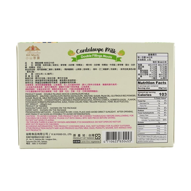 台湾小山等露 双馅麻糬 哈密瓜牛奶味 180g | 亚米