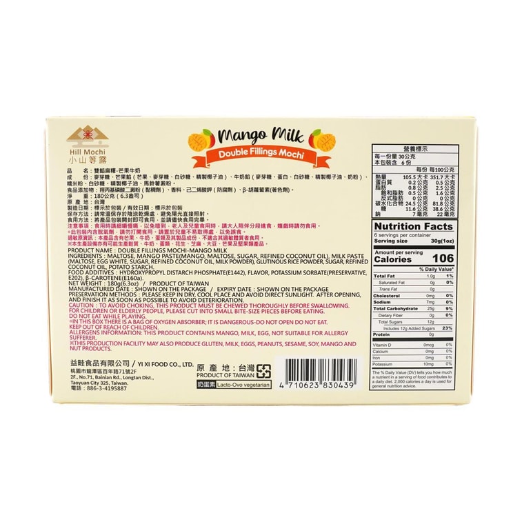 台湾小山等露 双馅麻糬 芒果牛奶味 180g