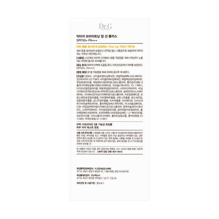 韩国Dr.G蒂迩肌 焕亮清透修护防晒霜 烟酰胺美白滤镜防晒 润色打底 控油持妆 SPF50+/PA+++ 50ml 敏感肌可用