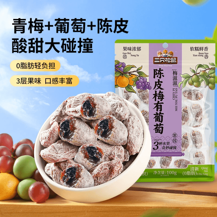 三只松鼠 【店庆大促】陈皮梅有葡萄休闲零食100克*1袋 | 亚米