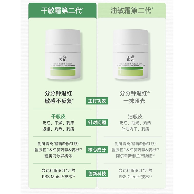 玉泽新升级!第二代干敏霜 干敏肌专研 保湿面霜 皮肤屏障修护 清透保湿霜