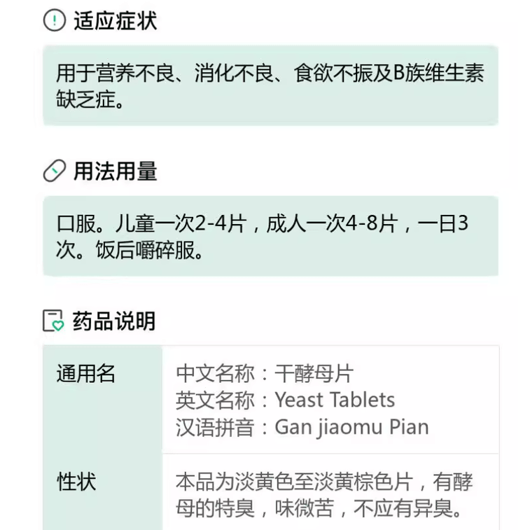 爱生活 天桥牌 干酵母片 用于营养不良 消化不良 食欲不振及B族维生素缺乏症 0.2g*80片/袋