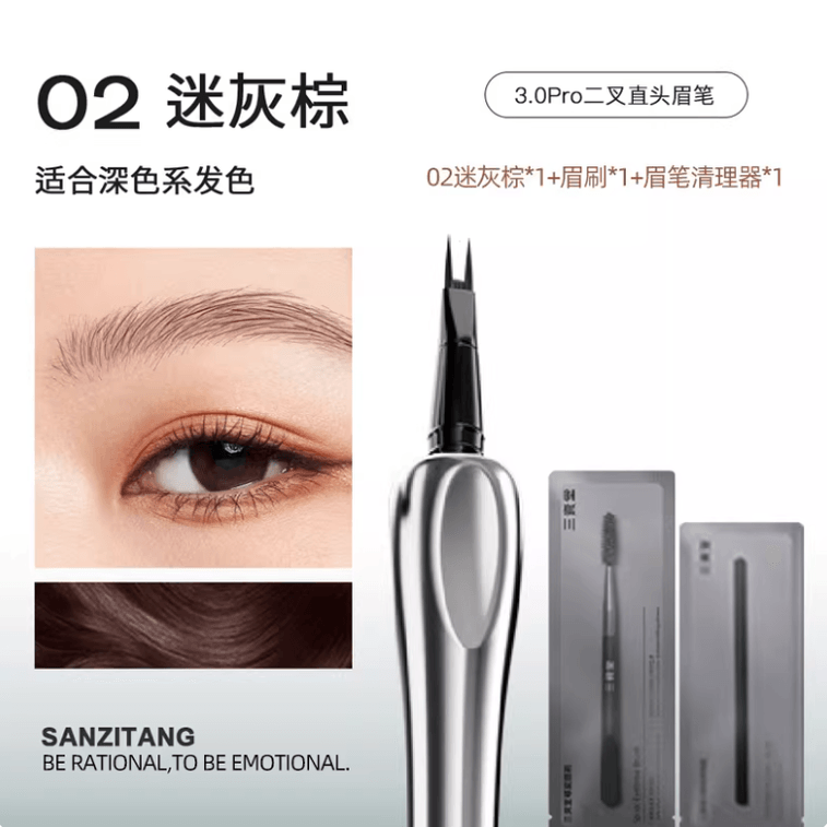 【中国直邮】 三资堂 二叉水眉笔 02 迷灰棕 深色系发色推荐 持久防水不脱色 一笔勾勒 立体野生眉 0.8g 1支
