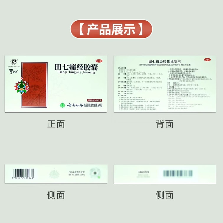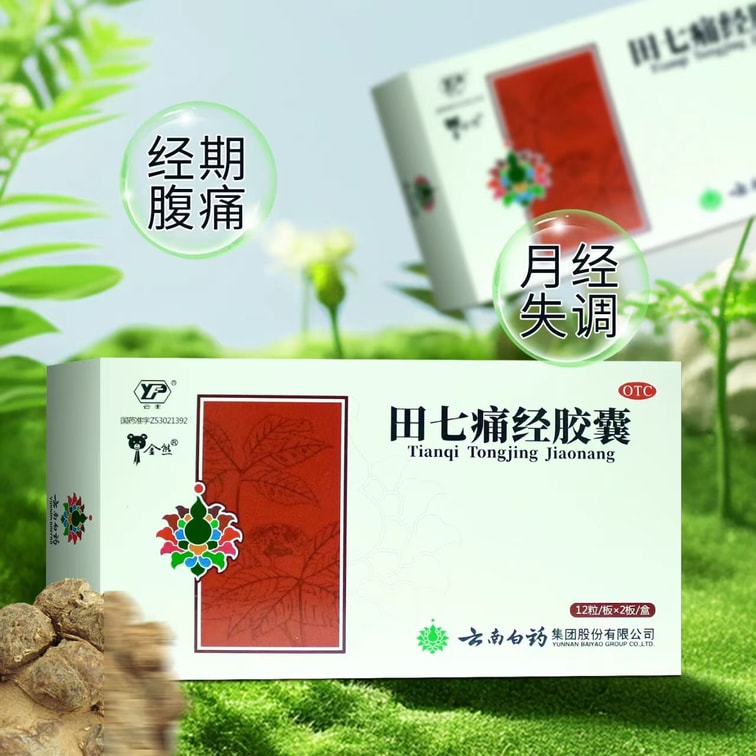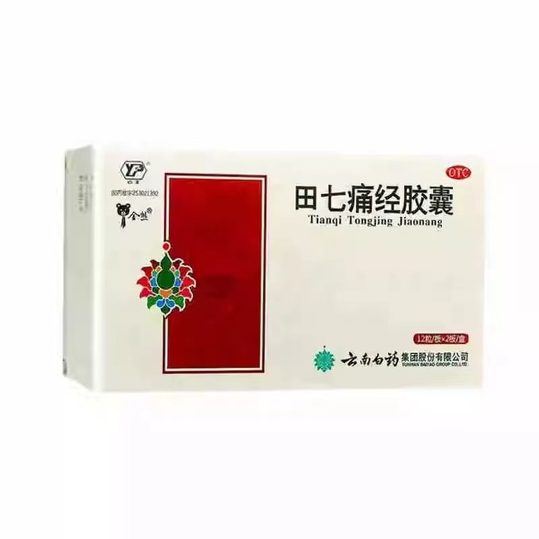 云南白药 国药准字 田七痛经胶囊 通调气血 止痛调经 用于经期腹痛及因寒所致的月经失调 12粒*2板