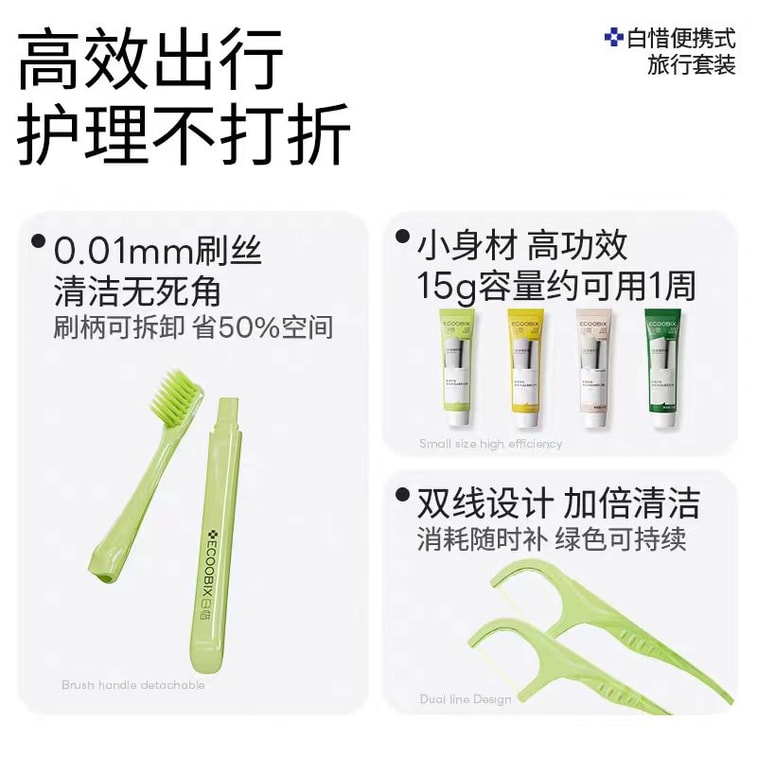 【中国直邮】 白惜 Ecoobix便携式口腔护理套装出差旅行必备随身牙具小巧带盖1套