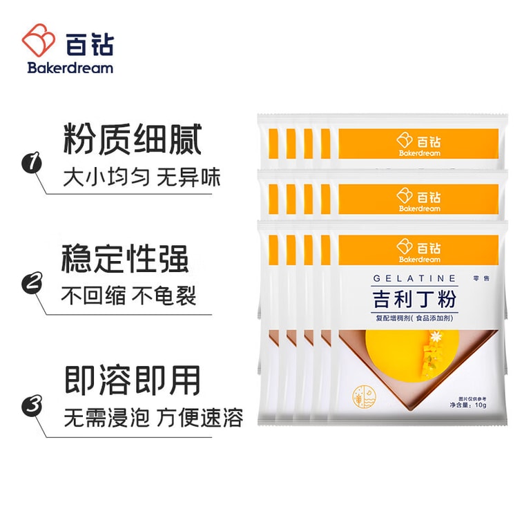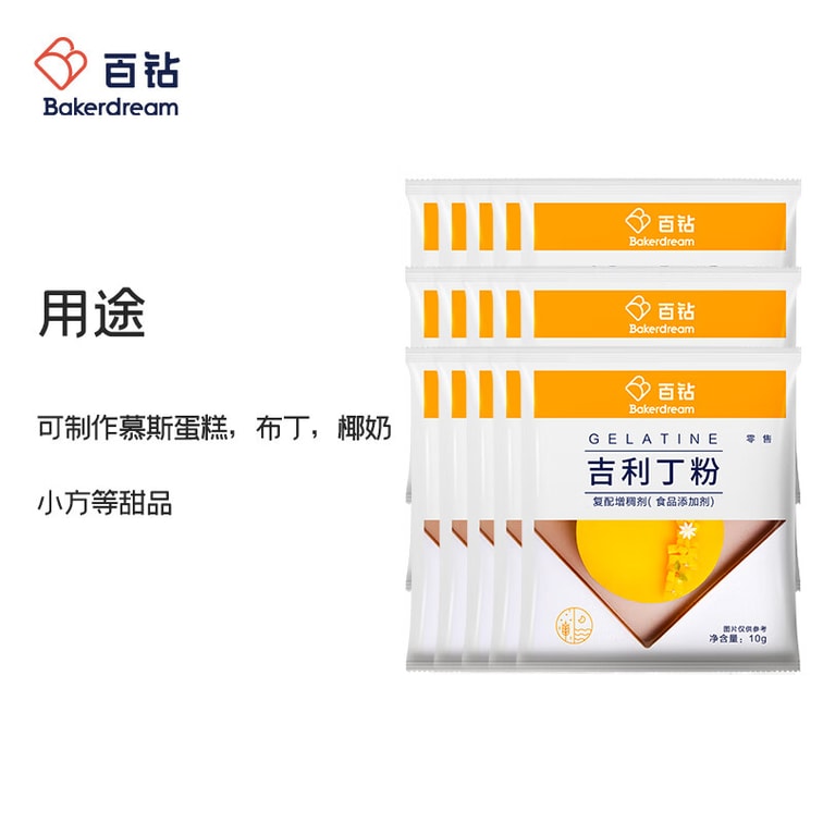 【中国直邮】 百钻 吉利丁粉10g*15袋食用明胶粉家用果冻奶酪棒慕斯蛋糕材料烘焙原料