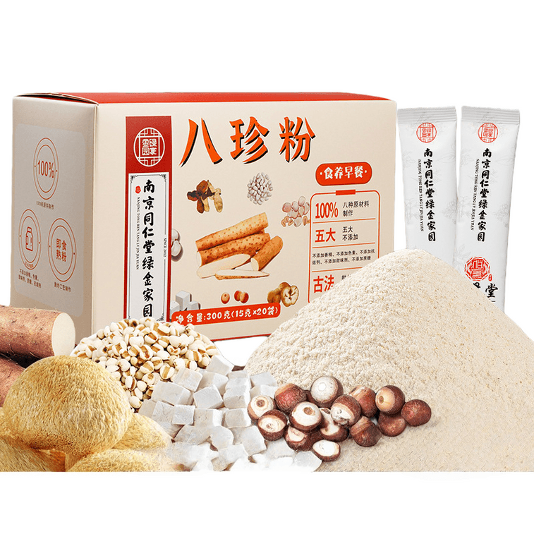 南京同仁堂 八珍粉 健脾养胃祛湿 补气血养生 药食同源早餐代餐粉 配料干净无蔗糖0添加 300g/盒
