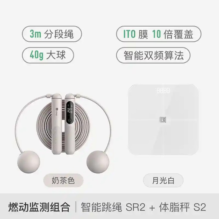 【中国直邮】 Keep 无绳跳绳 智能计数 减肥健身专用 家用燃脂减脂运动 App课程跟练 SR2 智能跳绳两用版/奶茶+智能体脂秤S2/白