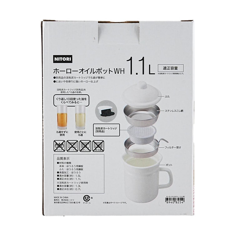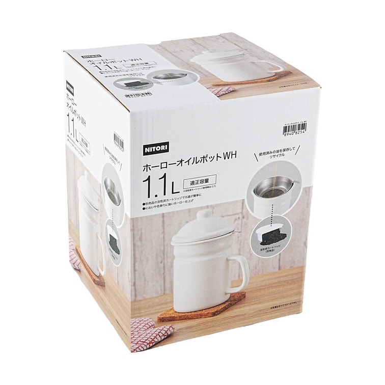 日本NITORI 琺瑯油壶 滤油壶 过滤油渣调料壶 1.1L 不含滤芯