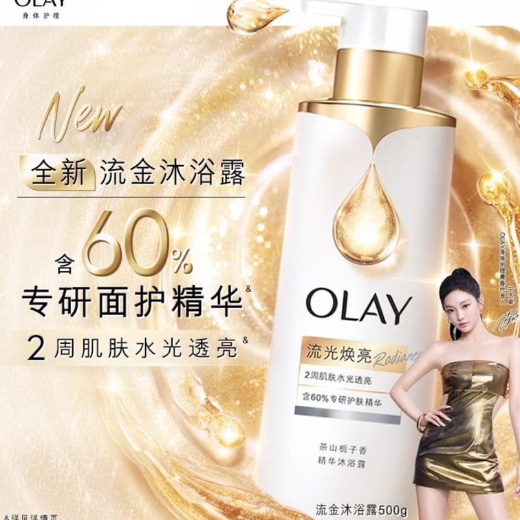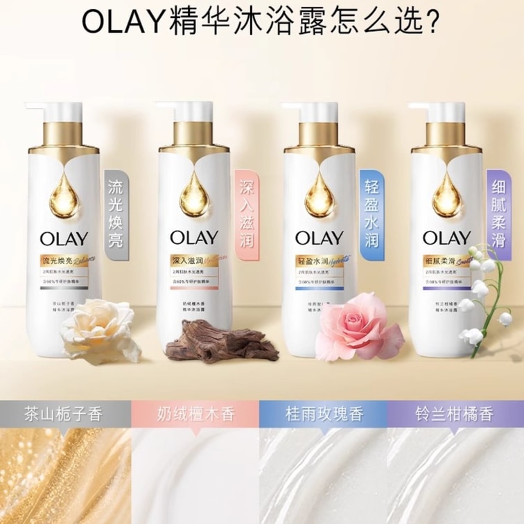 【中国直邮】 美国 OLAY 精华沐浴露 烟酰胺鎏金男女士面护级精华流金瓶 奶绒檀木 500g