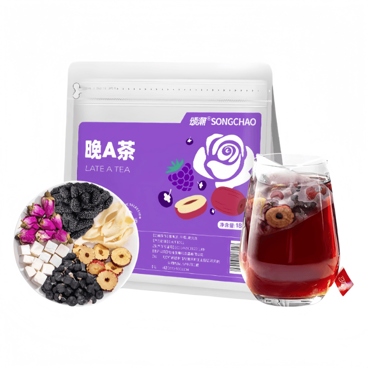 【中国直邮】 颂潮 晚a茶组合黑枸杞桑葚玫瑰茶茯苓茶包女神茶180g*1包