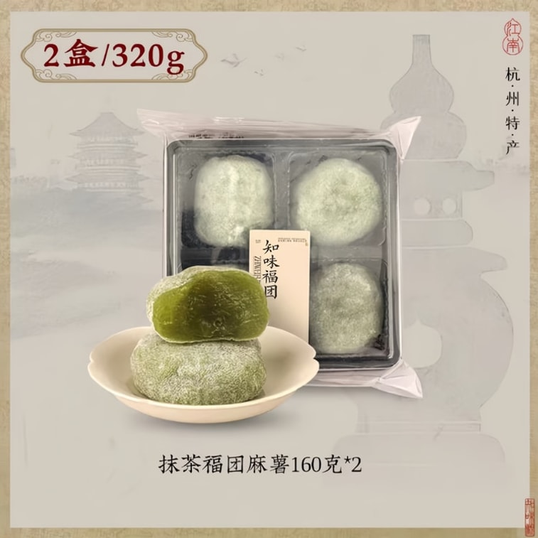 【中国直邮】 知味观 爆浆抹茶福团麻薯 160g*2盒 网红爆款干吃汤圆 懒人早餐速食 糯米糍茶点小吃【江南特色糕点】
