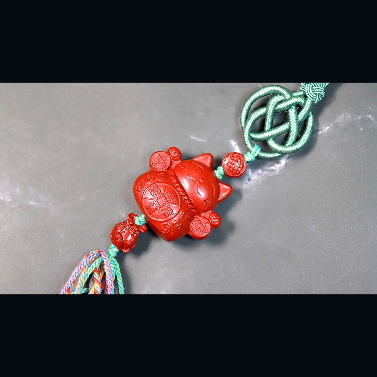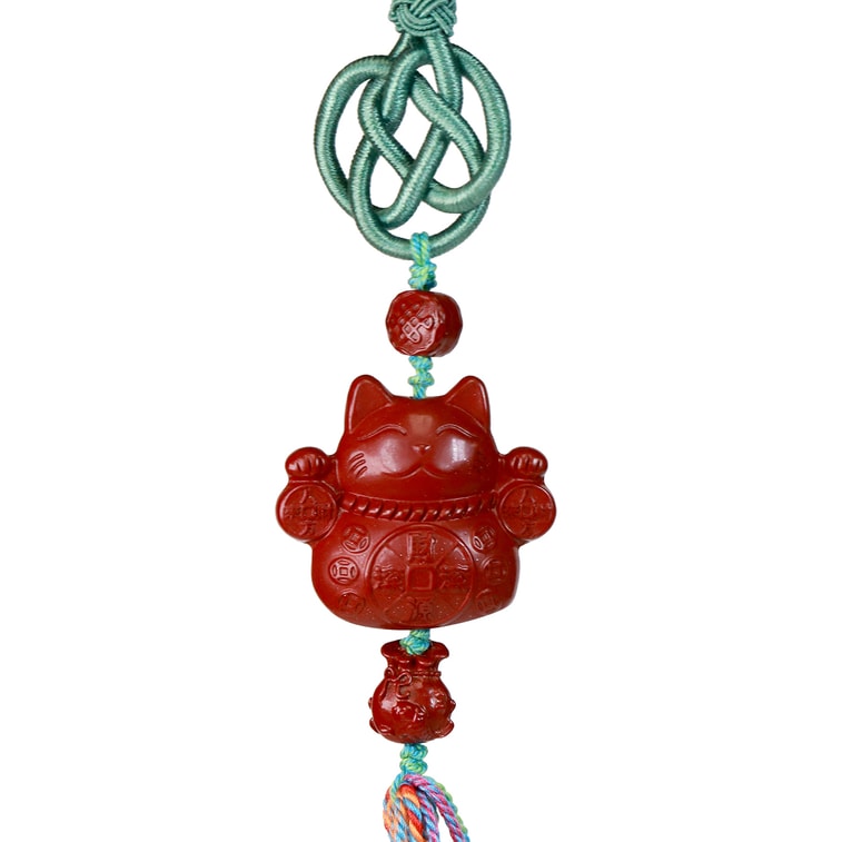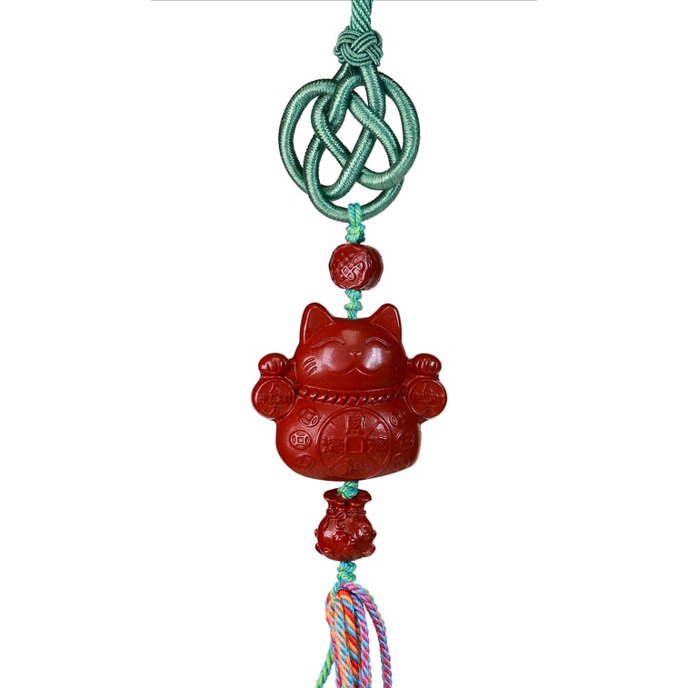 美国 GINKGOHOME 精美朱砂招财猫雕刻车挂 幸运招财装饰品