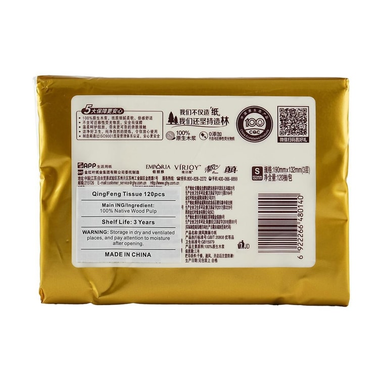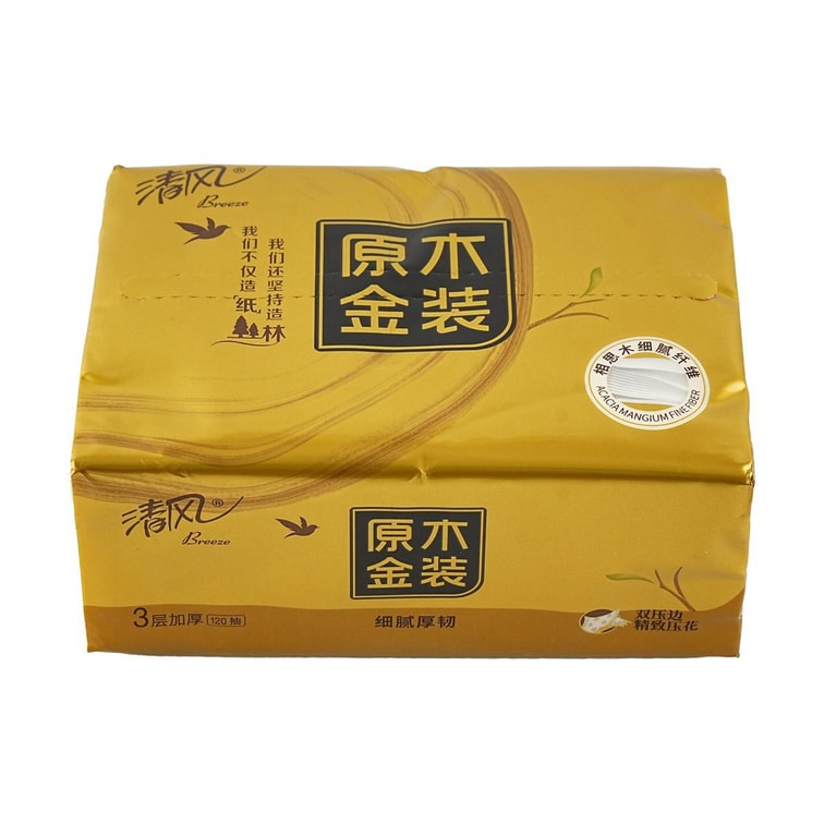 清风 原木金装抽纸 餐巾纸卫生纸三层抽纸 190*132mm120抽/包