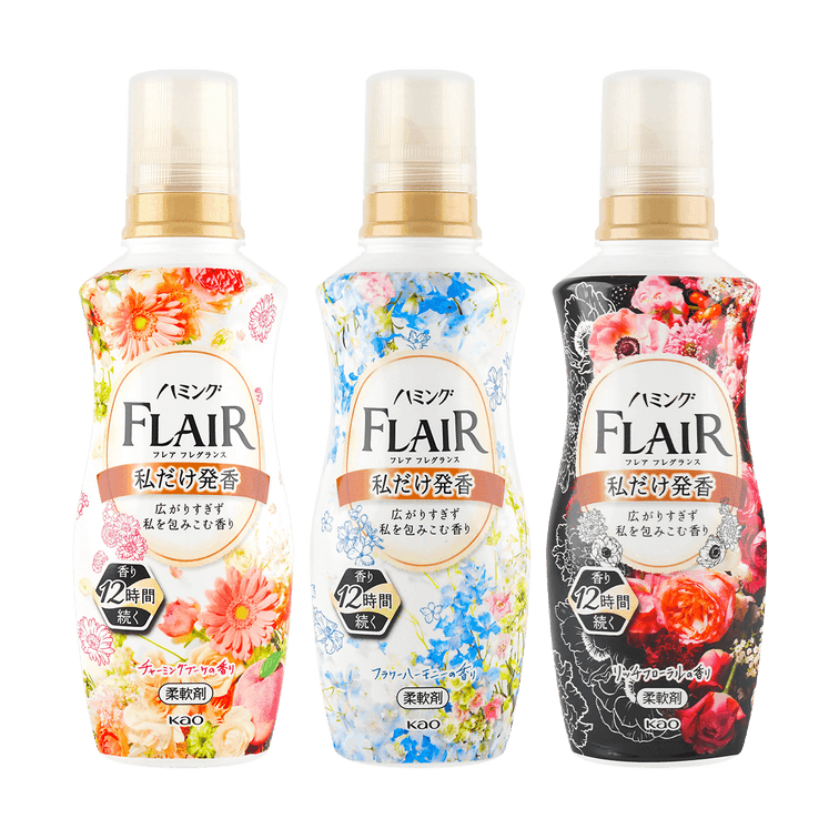 日本KAO花王 FLAIR 衣物香水柔软剂 浓郁花香型 520ml+魅力馨香型 520ml+柔和花香型 520ml【超值3瓶】【石原里美同款 2023新款】