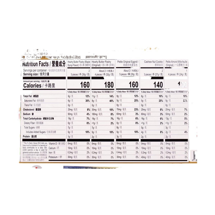 *免责声明:本页面所展示的营养成分信息来自商品包装,仅供参考。因包装版本、语言或拍摄方式不同,内容可能存在偏差或显示不完整,请以实际收到商品包装为准。如对成分、过敏原或适用人群有疑问,建议在使用前仔细阅读包装说明,或联系客服获取帮助。