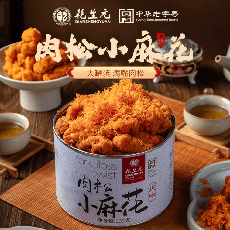 【中国直邮】 乾生元 肉松麻花 原味 金黄酥脆 可甜可咸 中式传统点心 解馋小零食 休闲食品 330g 1罐装