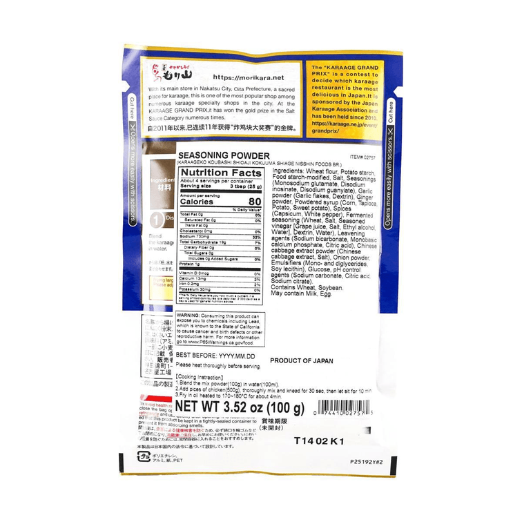 日本NISSIN日清制粉× MORIKARA联名 脆皮唐扬炸鸡粉 盐酥鸡裹粉腌料 椒盐味 100g【炸鸡大赛金奖】