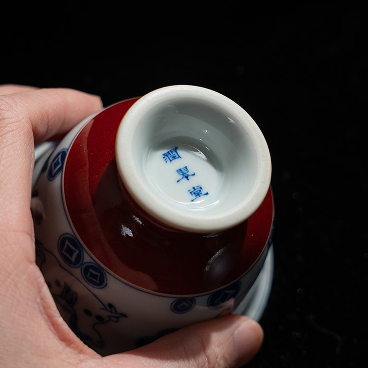 此品茗杯由景德镇“郎红世家”润翠堂创始人——胡旻大师亲手制成。润翠堂底蕴深厚,其根源可追溯至清代康熙末年的洪家窑厂,数百年来深耕颜色釉艺术,更因釉色造诣极高而常年受御窑厂征调。