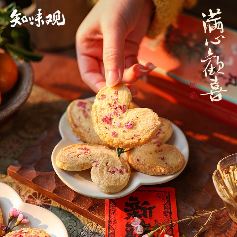 【中国直邮】 知味观 酥香清甜玫瑰蝴蝶酥 56g 匠心手作杭州特产 新中式传统茶点休闲零食【60天短保】