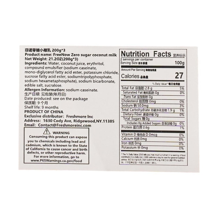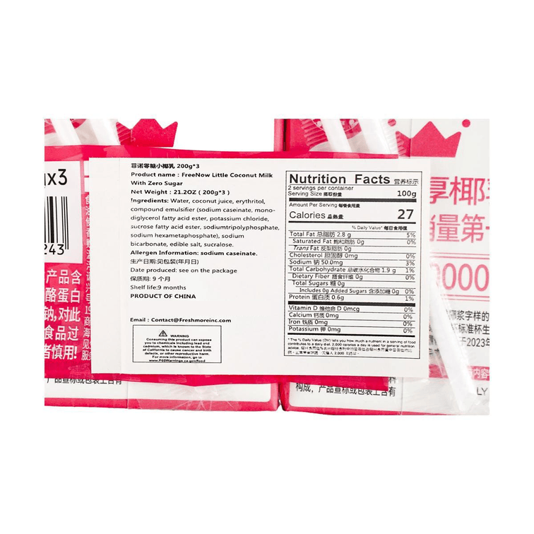 | 原料成分 | 水、椰肉汁、赤藓糖醇、酪蛋白酸钠、碳酸氢钠、食用盐等 |