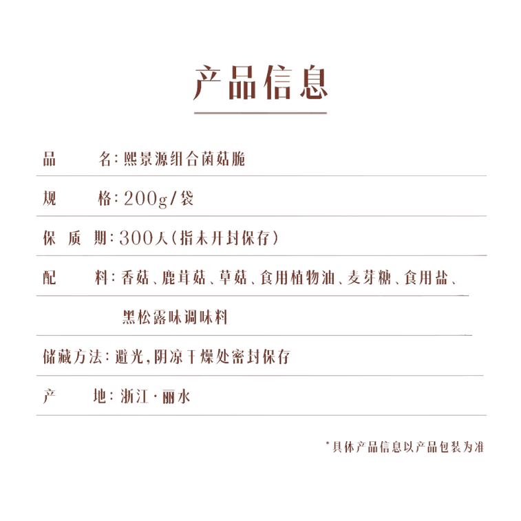 【黑五大促】【中国直邮】 熙景源 黑松露组合菌菇脆香菇脆果蔬脆非油炸冻干200g*1 | 亚米