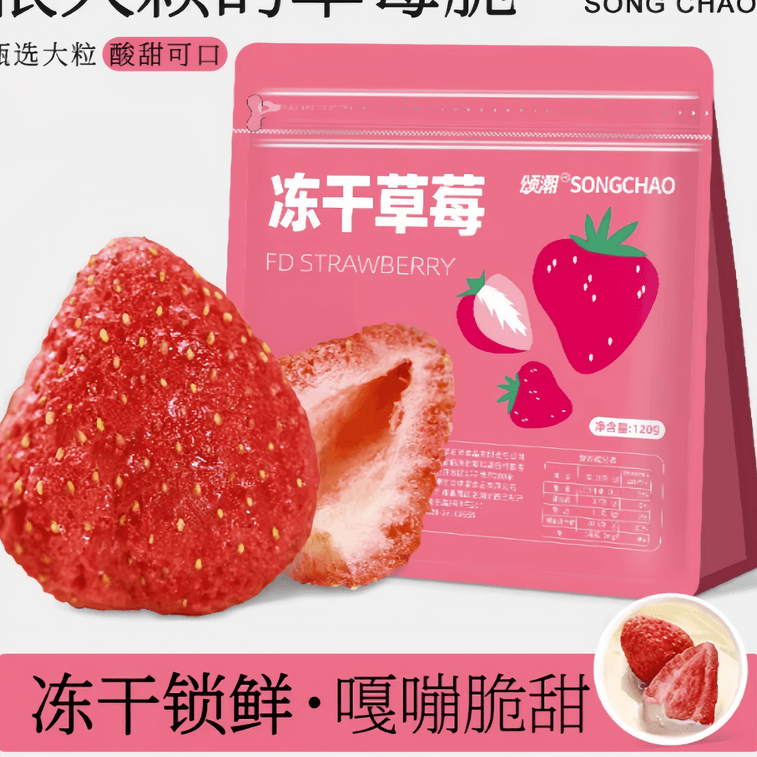 【中国直邮】 颂潮 冻干草莓干草莓脆雪花酥烘焙即食120g*1袋