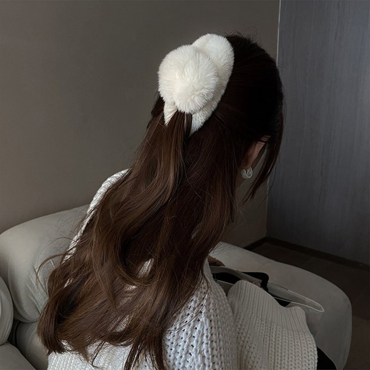 【中国直邮】 HSPM 法式高级感鲨鱼夹头饰大号真獭兔毛毛绒抓夹 奶茶色 大号 1个