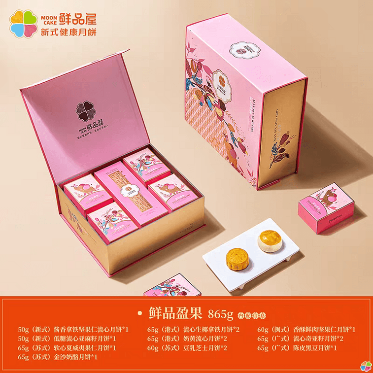 【中国直邮】 臻味坊 鲜品盈果中秋月饼礼盒 865g 中秋送礼长辈高档伴手礼礼品