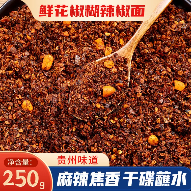 【中国直邮】 鲜窝窝 鲜花椒辣椒面 贵州特产 糊辣椒蘸水 胡辣椒烧烤撒料 干碟蘸料250g