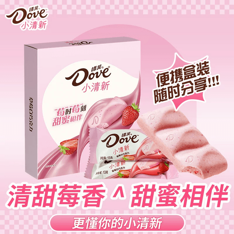 【中国直邮】 德芙 清新草莓白巧克力 78g盒装*1 便携小方砖盒装 出游零食巧克力喜糖