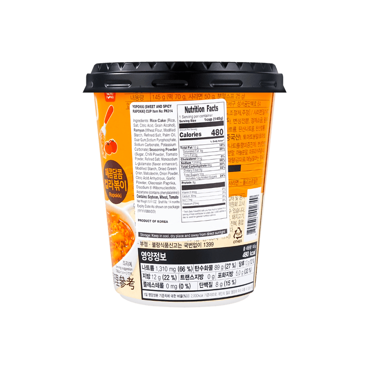 韩国YOPOKKI 拉面+炒年糕 甜辣口味 杯装 145g【韩式经典 双重口感】