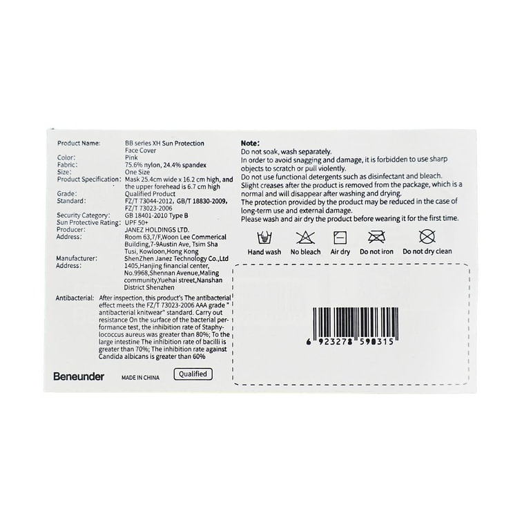 BENEUNDER蕉下 冰薄系列 全脸防晒面罩口罩 医美可用 浅藕粉