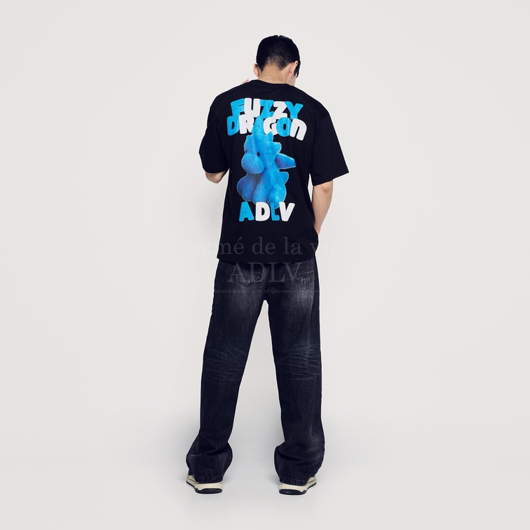 【韩国直邮】 韩国 acmé de la vie ADLV 毛绒字体龙短袖T恤 黑色 1