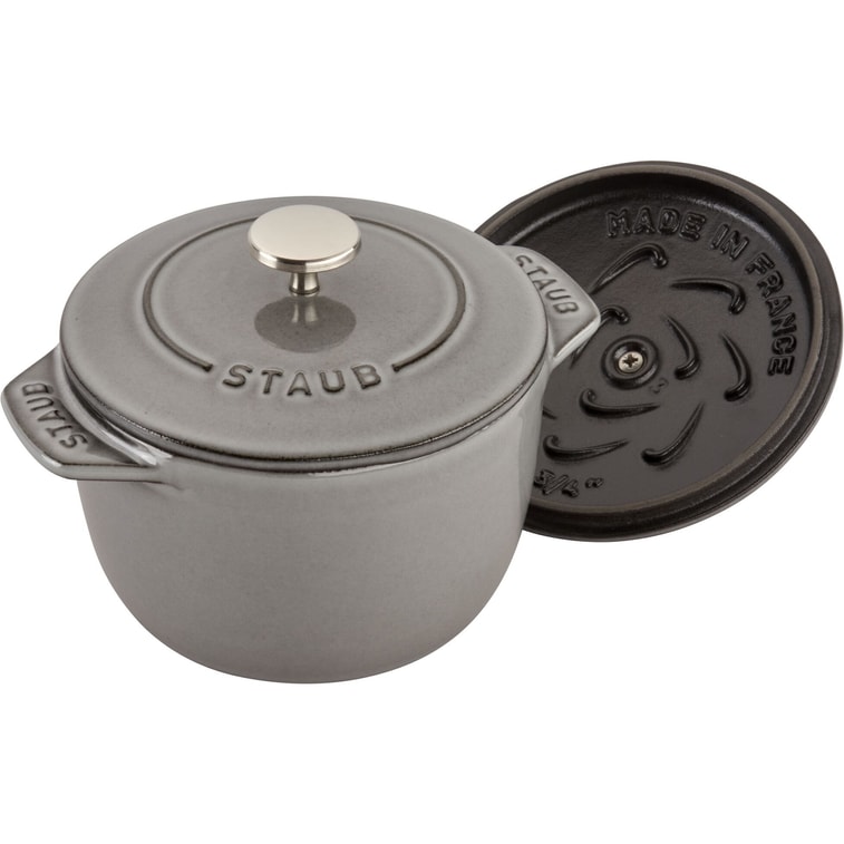 .75 QT Petite French Oven是Staub传奇锅具系列的最新成员。这个可爱的锅非常适合个性化烹饪。由于Staub标志性的新设计盖子,您可以轻松地将炖菜、汤和配菜烹饪得美味可口。Chistera滴状结构盖子内部有弯曲的尖刺,这种创新设计确保持续的湿度。Staub的Petite French Oven从灶台到餐桌都表现得非常美观,无需额外的餐具。多亏了Staub,好东西总是包装精美,食谱在这些迷人的锅具中表现出色。