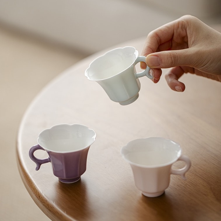 【赠品】美国 赵赵的茶 茶杯 陶瓷 功夫茶 茶具 40ml 带把花口式 1个 (颜色随机)
