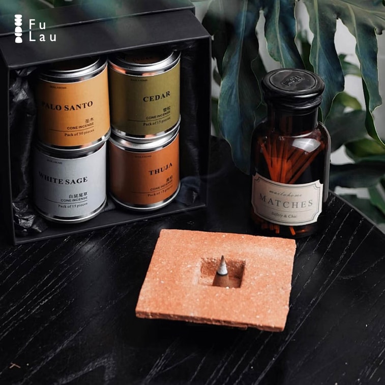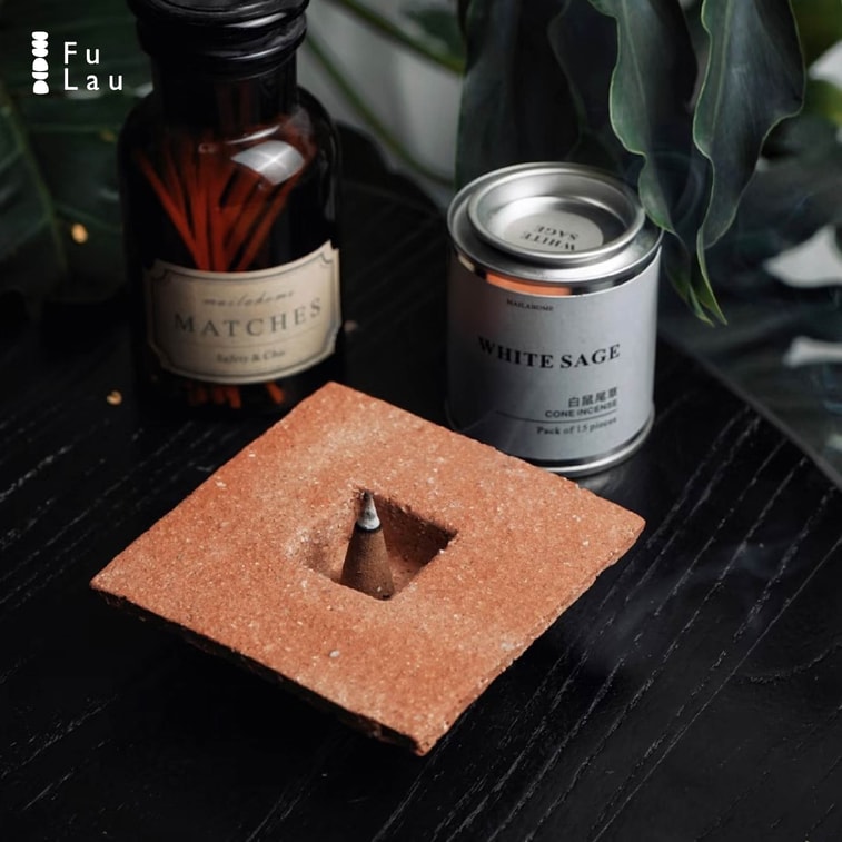 【赠品】FuLau 福缭 【景德镇原创手工香插 - 方矩】【侘寂】【小众】陶瓷香炉 香盘 置物盘 点心盘 鼠尾草净化碗 1件套