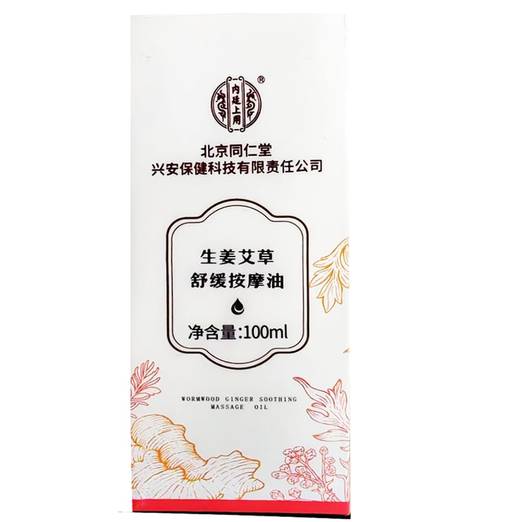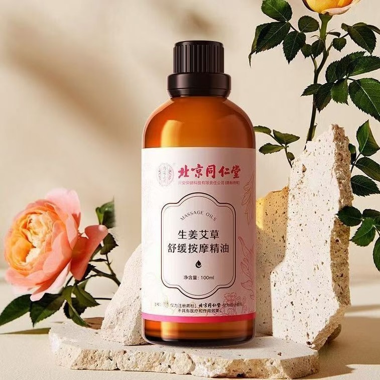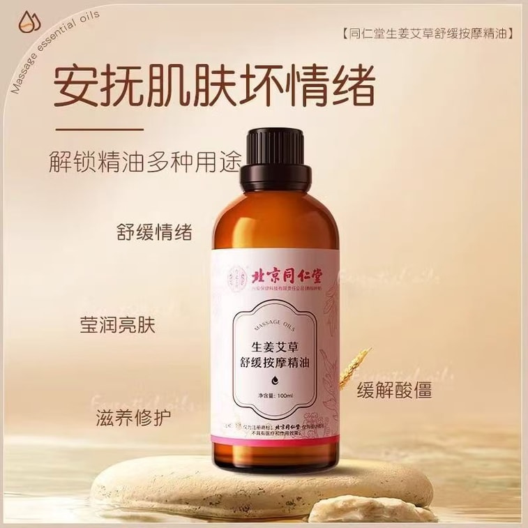 北京同仁堂 生姜艾草舒缓按摩油 100ml 全身经络推拿肩颈背 揉腹刮痧祛湿 | 亚米